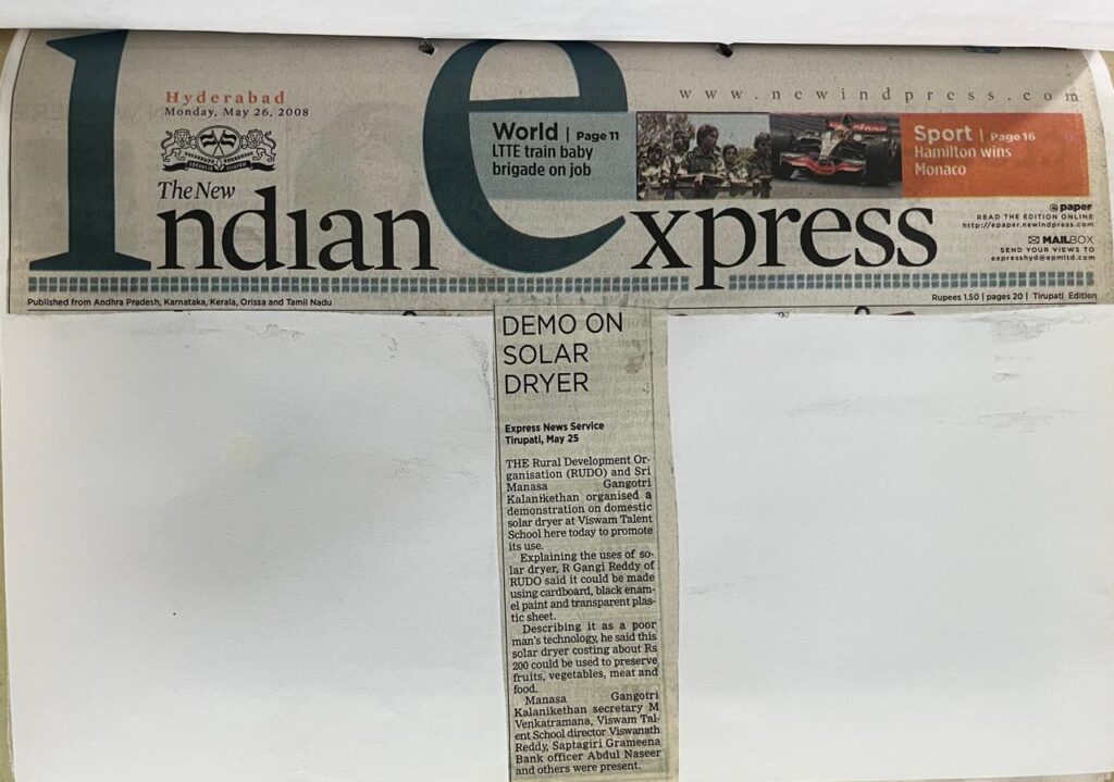 THE Rural Development Or ganisation (RUDO) and Sri Manasa Gangotri Kalanikethan organised a demonstration on domestic solar dryer at Viswam Talent School here today to promote its use.