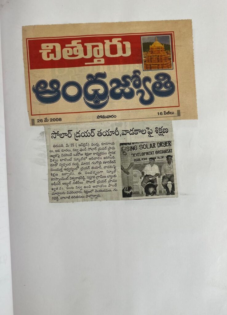 Explaining the uses of so lar dryer, R Gangi Reddy of RUDO said it could be made using cardboard, black enam-el paint and transparent plas tic sheet.