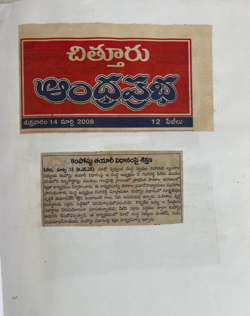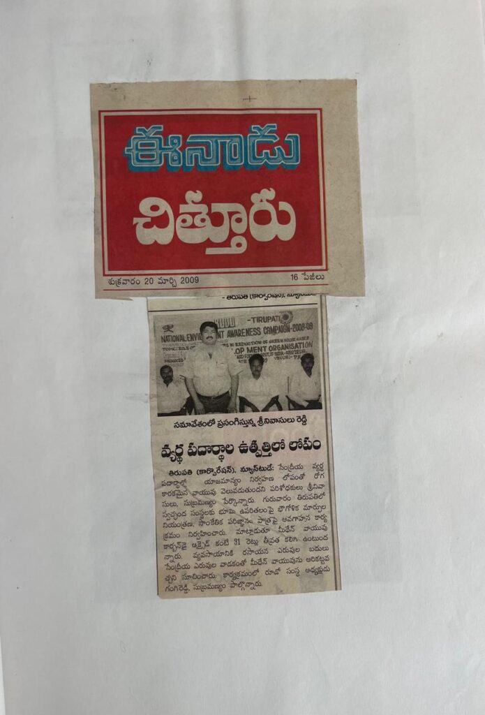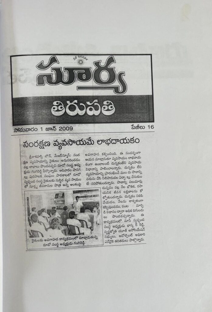 was established in the year 1983 founded by R.Gangi Reddy. In the year 1984, Oxfam-Bangalore supported the founder to visit the prominent NGO in AP, Karnataka and Tamil Naidu to gain experience to initiate development project. During the year 1984-86 a project entitled “Development through Indigenous Resources” was implemented in association with Dr.Spellman, Prof in Asian Cultures, Windberg University, Canada. Under this project the indigenous agriculture, indigenous health practices and indigenous legal systems were promoted in five villages.